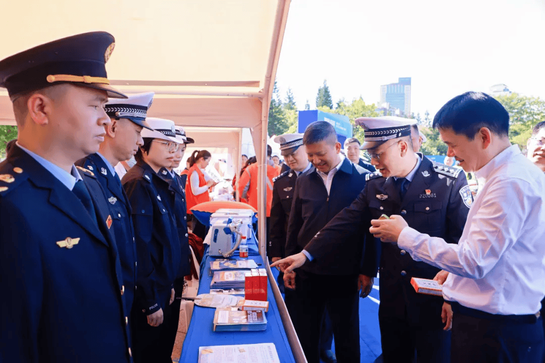 交警同志细心宣讲交通安全内容,只为守护市民的每一次平安出行。轻工大国工匠、莆田木雕传承人林建军发出交通安全倡议。